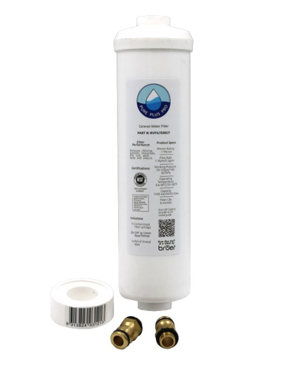 The RV Inline Filter Kit is a simple inline filtration solution designed for caravan and RV water supplies. It connects directly to a standard garden hose and filters all incoming water before it enters the vehicle. This makes it suitable for protecting taps, appliances, and drinking water outlets throughout the RV or caravan.